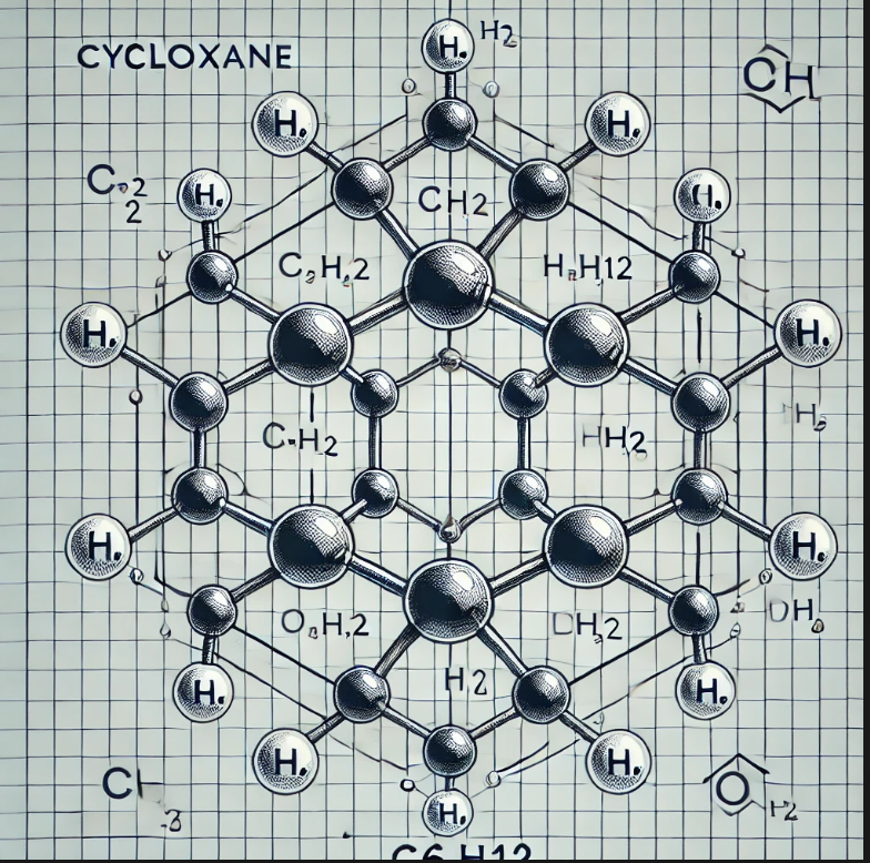 altı karbon ve on iki hidrojen atomundan oluşan, kapalı bir halkasal yapıya sahip bir hidrokarbondur ve formülü C₆H₁₂’dir. Genellikle çözücü olarak kullanılır ve kapalı bir halka yapıda olduğundan dolayı karbon atomları bir halka oluşturur. Renksiz, hafif bir kokuya sahip olan siklohekzan, petrol rafinerilerinde ve laboratuvar ortamında yaygın olarak üretilir. Endüstriyel temizlik ürünlerinde çözücü olarak kullanılması dışında naylon üretiminde de önemli bir ara madde olarak görev alır.